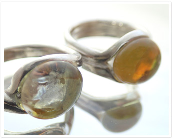 ガラスフュージングとのコンビネーションはコハク色などの未知の色合いと形を生み出します。
